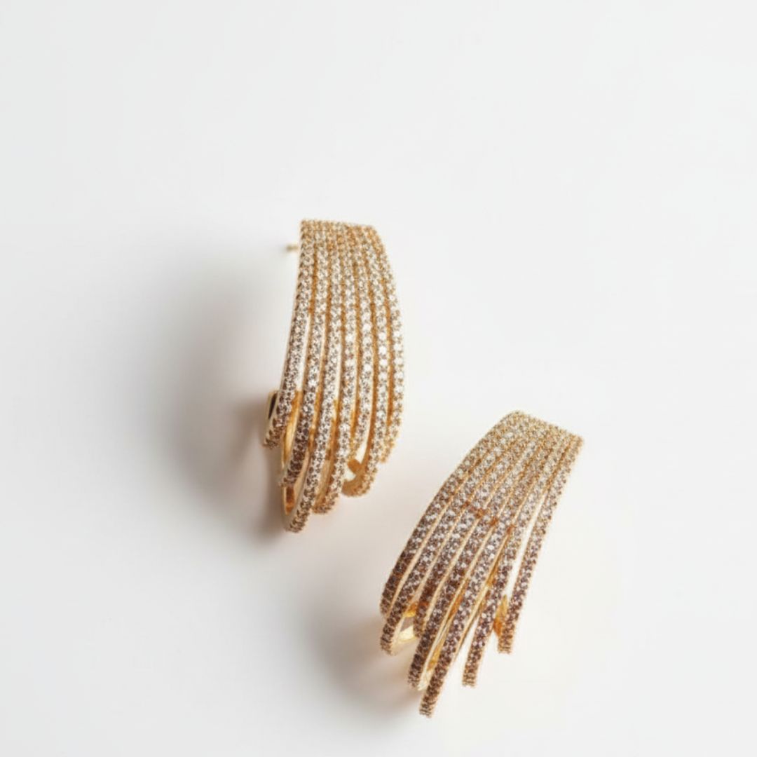 O Brinco Meia Argola 7 Voltas é a reinvenção de um clássico. Com um design inovador e impactante, essa peça é construída com sete delicadas voltas que criam um efeito visual de textura e movimento. É a escolha ideal para quem quer um brinco que seja, ao mesmo tempo, moderno, elegante e com presença. É uma peça única, perfeita para elevar o seu visual de forma instantânea.