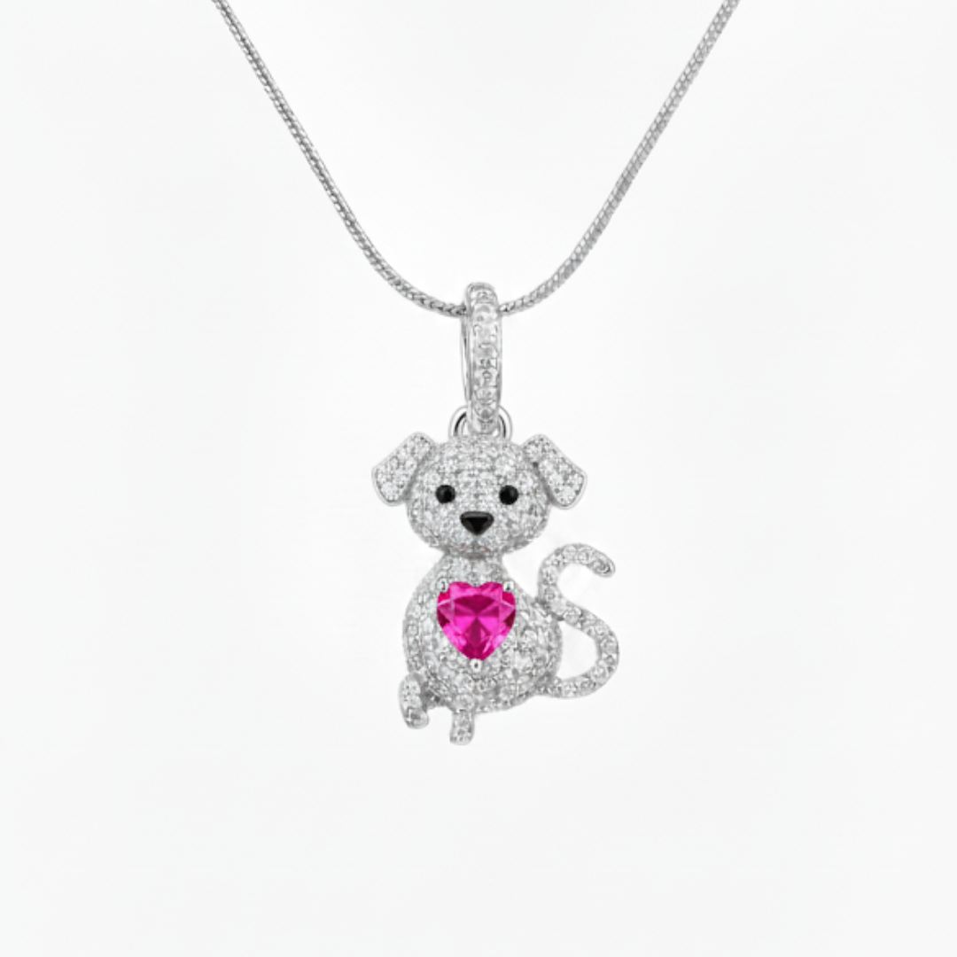 O Pingente Cachorro MZ é a escolha perfeita para quem ama felinos e quer carregar um toque de fofura e estilo. Com banho em prata e detalhes em rosa, o design traduz personalidade, leveza e delicadeza em uma joia charmosa e moderna.